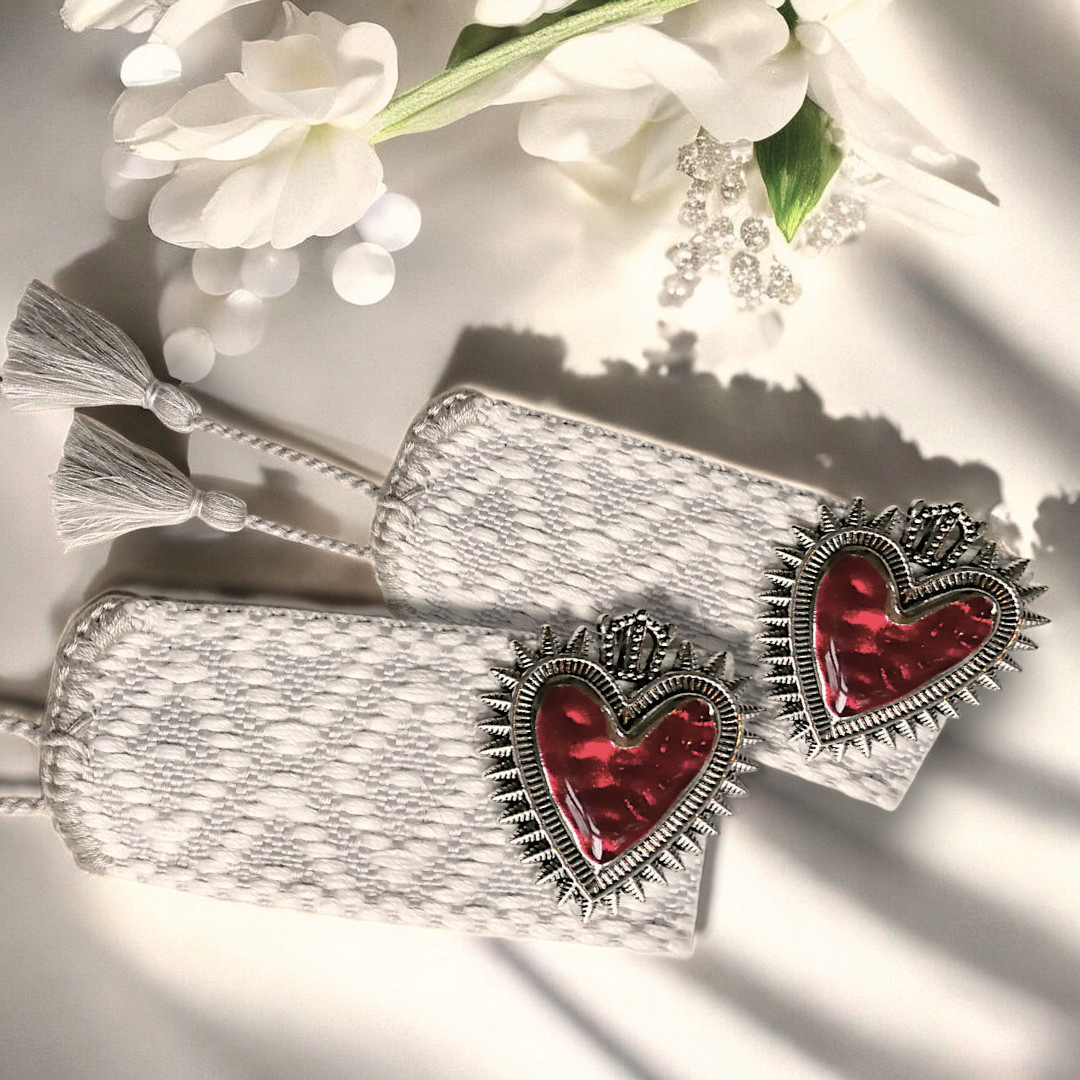 Centreret i designet sidder det hellige hjerte – støbt i oxyderet metal og fyldt med dybrød emalje. En lille krone hviler ovenpå som en hyldest til din egen indre konge eller dronning. Armbåndet er ikke bare en accessory – det er en spirituel påmindelse om at elske med ildhu og stå stærkt i sin sandhed.